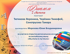 Шевальер Давид и Панова Нина – призеры региональной научно-практической конференции «Молодежь. Перспектива. Успех»