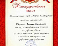 Подробнее20 апреля в Средней коррекционной школе №1 г. Иркутска проходило большое профориентационное мероприятие, на котором Тюрнева Людмила Михайловна, провела мастер-класс по профессиональному обучению профессии...
