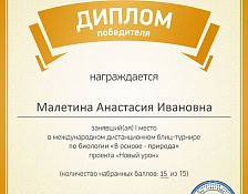 ПодробнееС 17 февраля по 3 марта проходил международный дистанционный блиц-турнир проекта «Новый урок» по биологии «В основе – природа» и по географии «Глобус мира»....